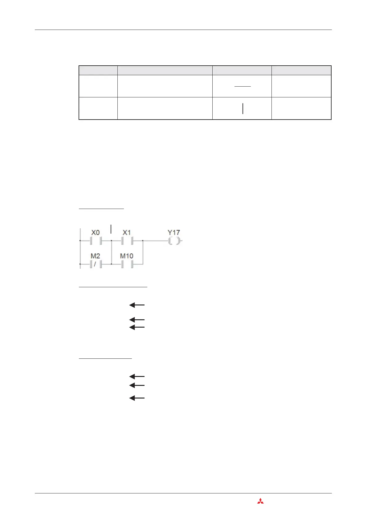 In this example output Y17 is switched on if input X00 is “1” and input X01 is “0”, or if relay M2 is