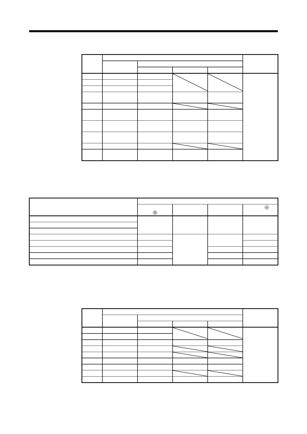 3. Select wire sizes depending on the rated output of the servo motors. The values in the table are sizes based on rated output of