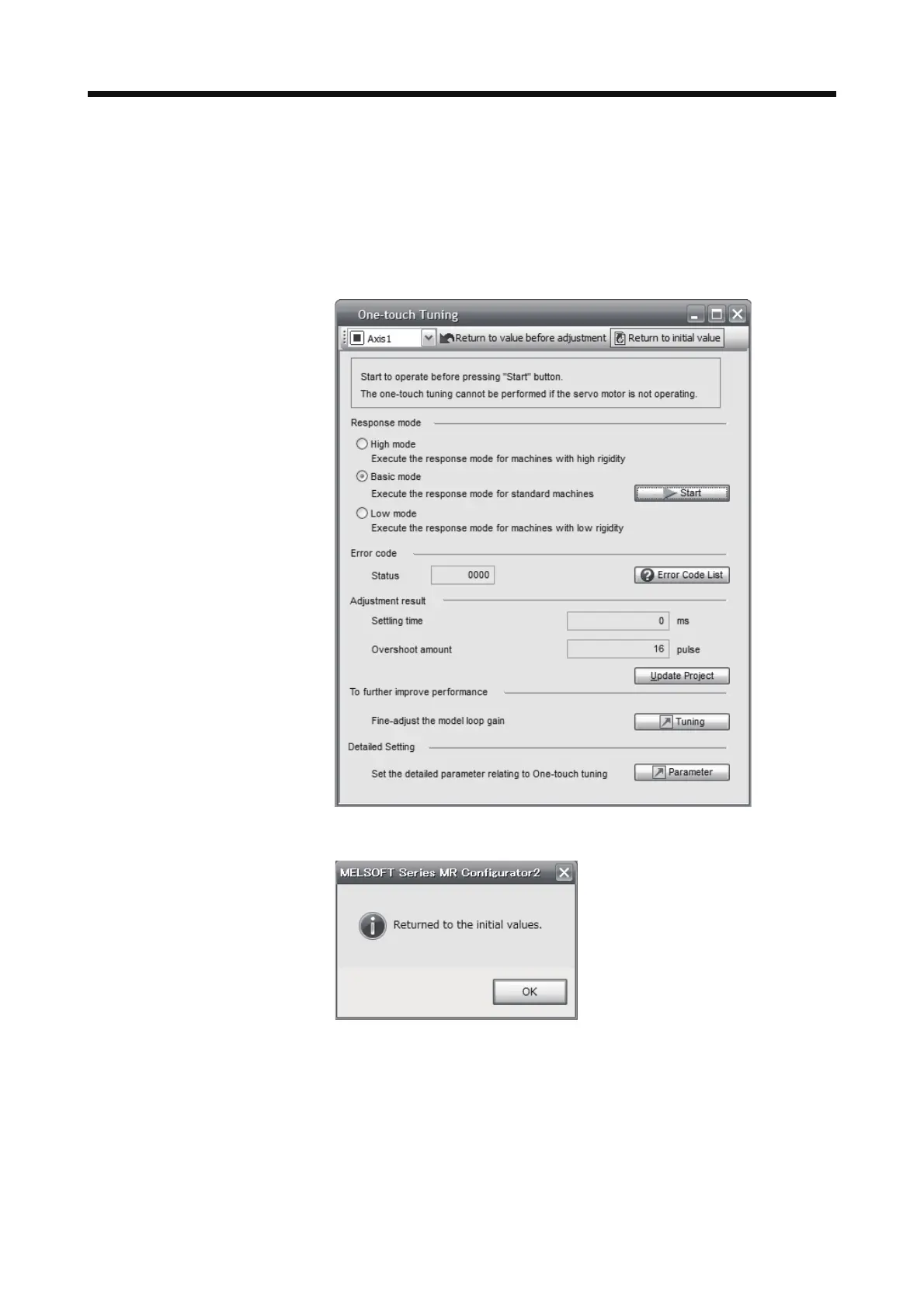 Clearing one-touch tuning is completed, the following window will be displayed. (returning to initial value)