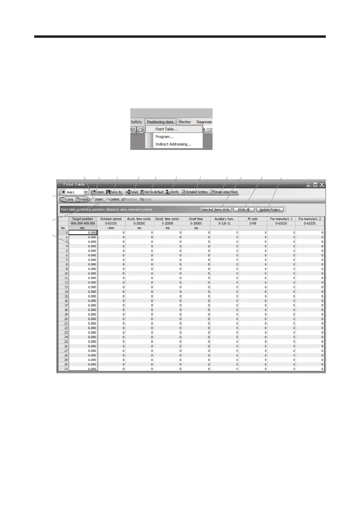 Click "Write All" to write all the point table data to the servo amplifier.