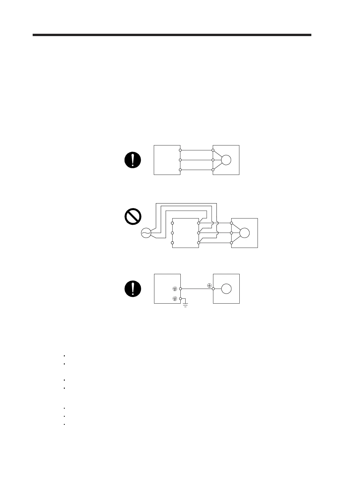 2) The power supplied to the servo amplifier should not be connected to the power output (U/V/W).