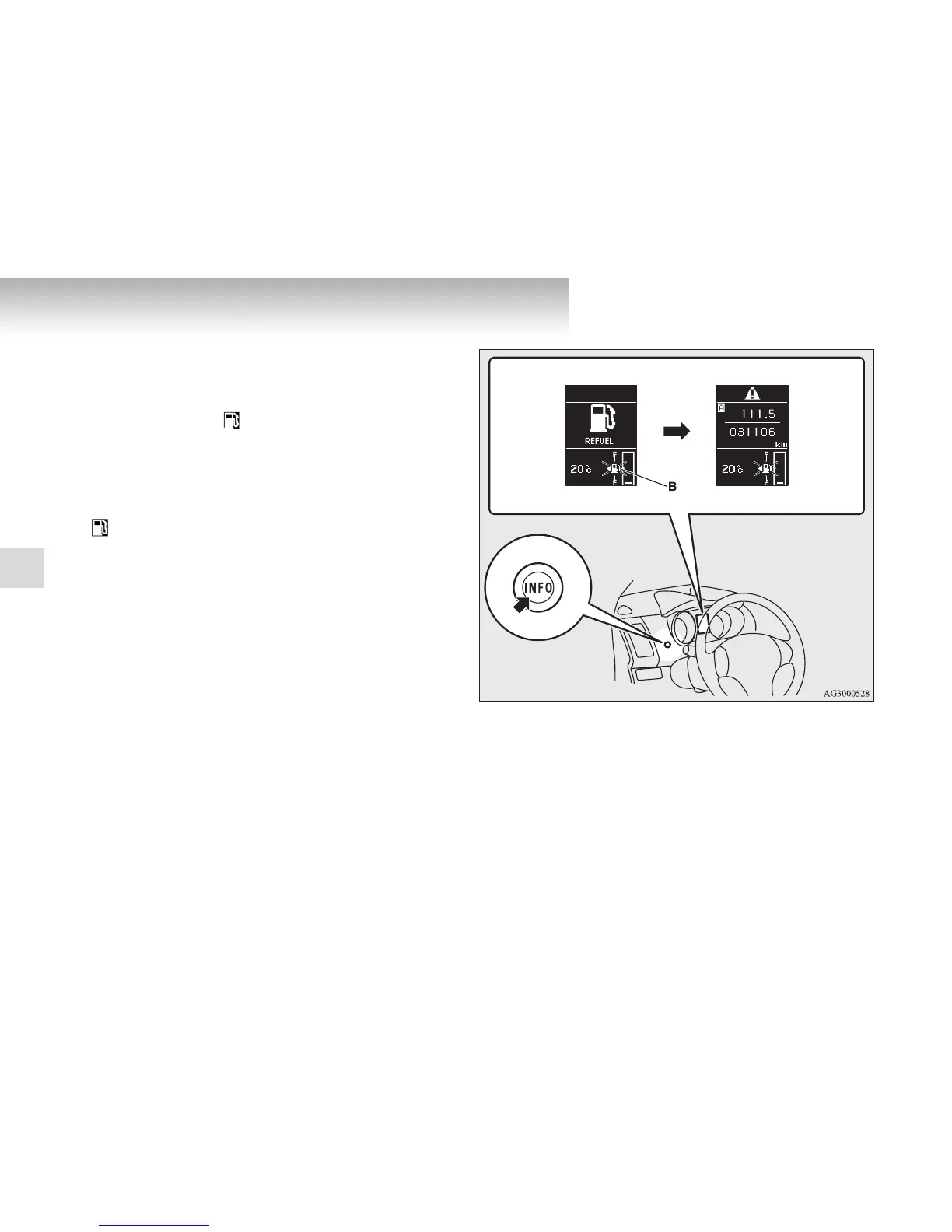 warning display, and the “ ” mark (B) on the fuel remaining
