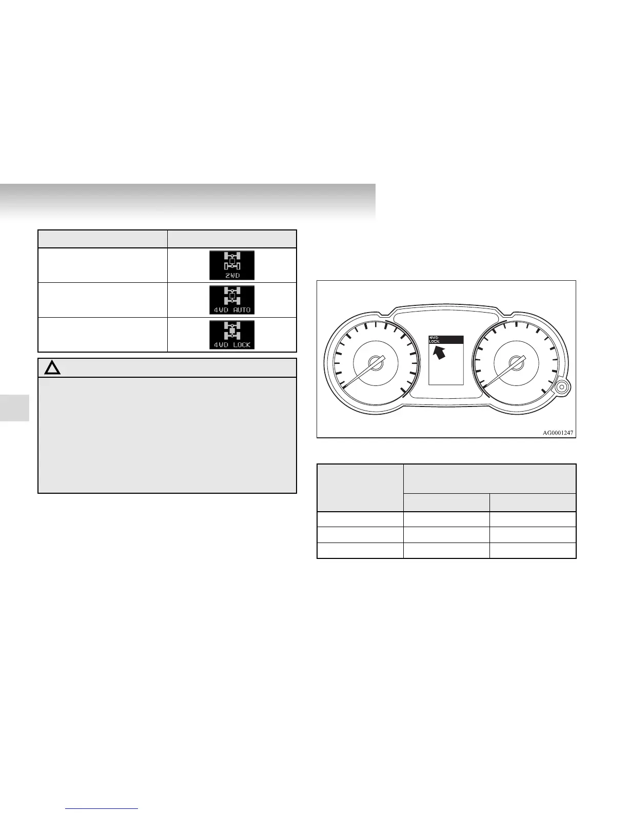 ● Driving on dry, paved roads in “4WD LOCK” mode
