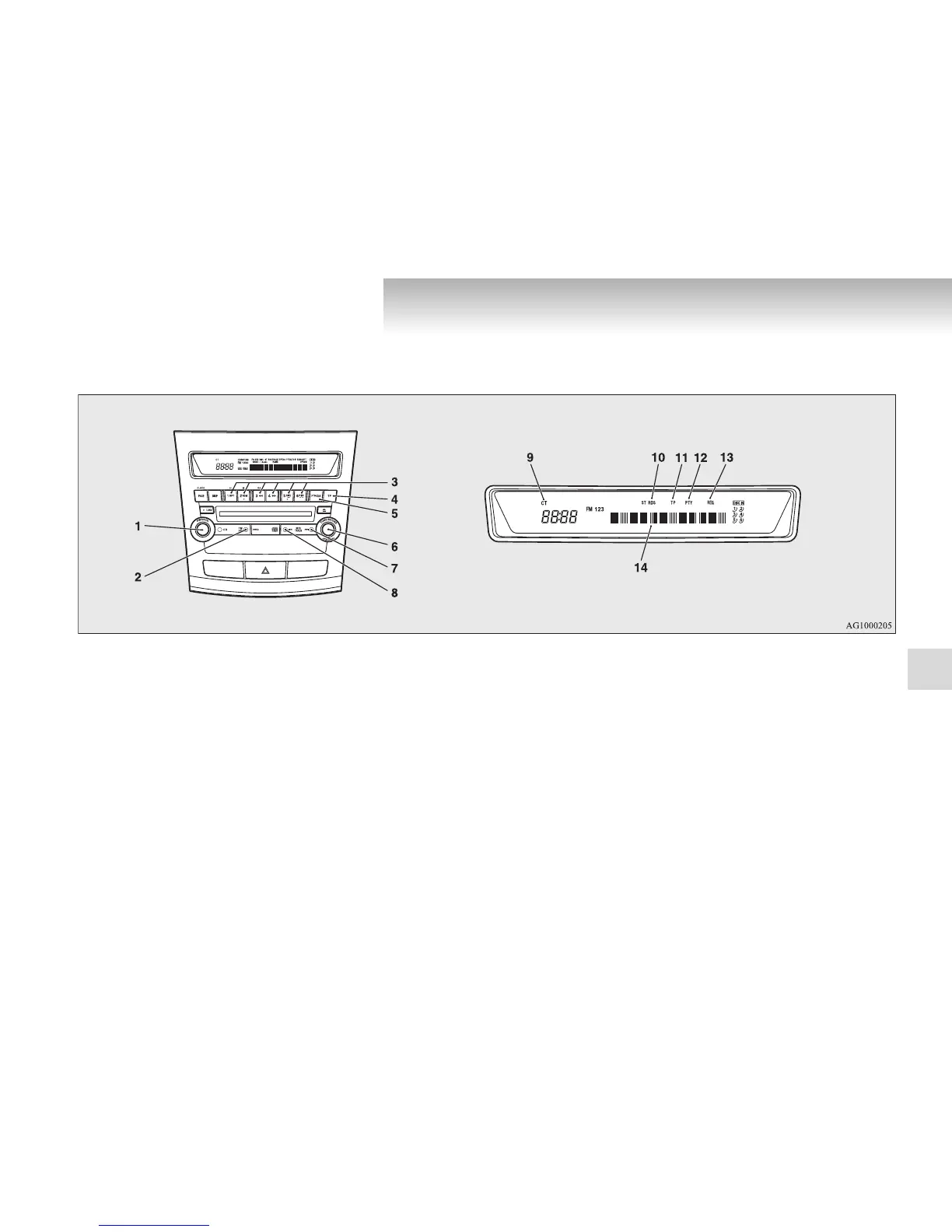 2- AM/FM (FM/MW/LW selection ) button 9- CT (Clock time) indicator