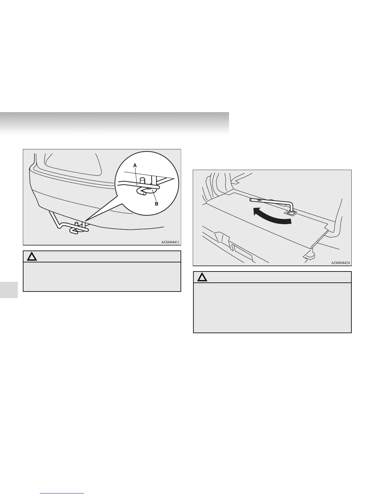2. Lift up the tyre hanger (A) and hang it on the hook (B). 3. Open the lower gate.