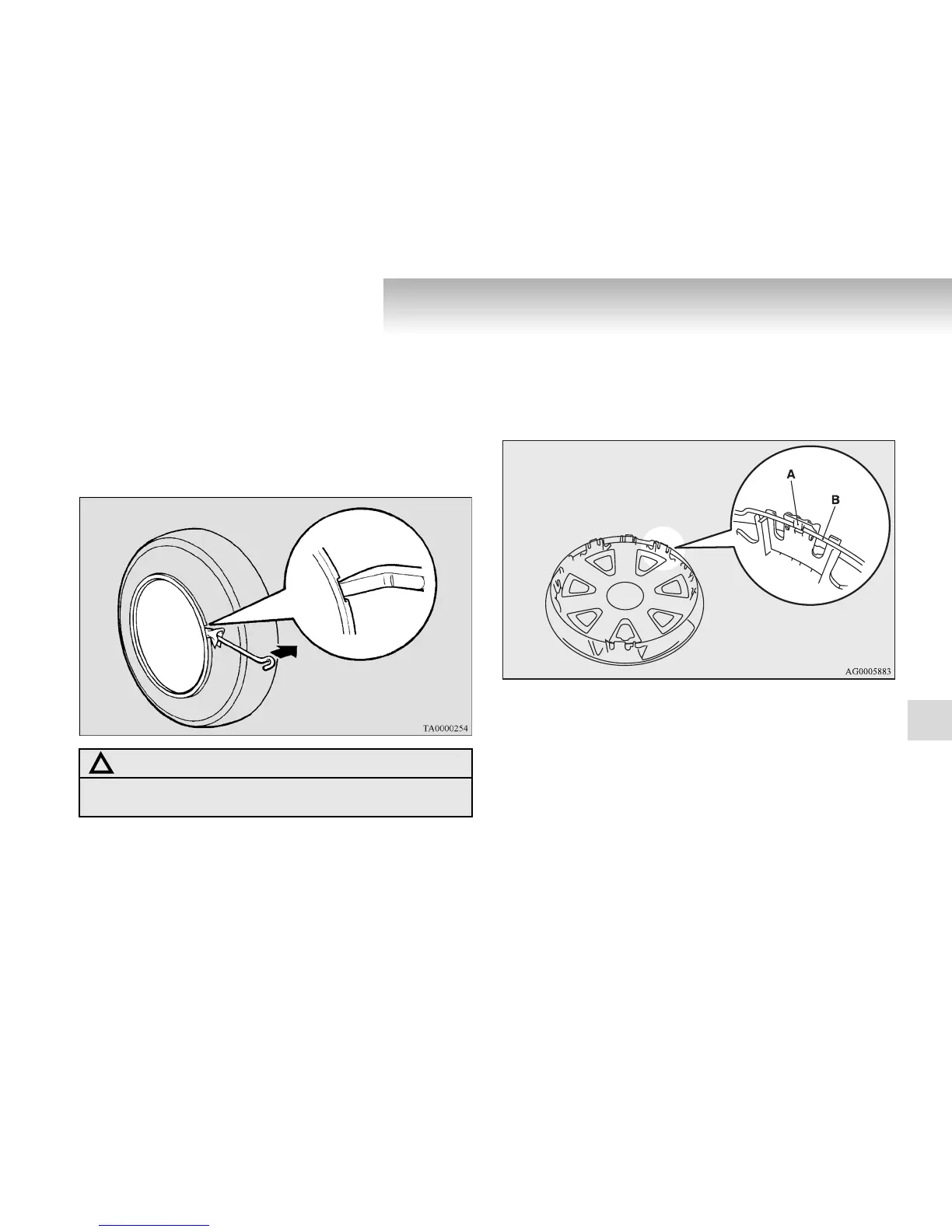 ● The wheel cover is made of plastic. Pry it loose carefully.