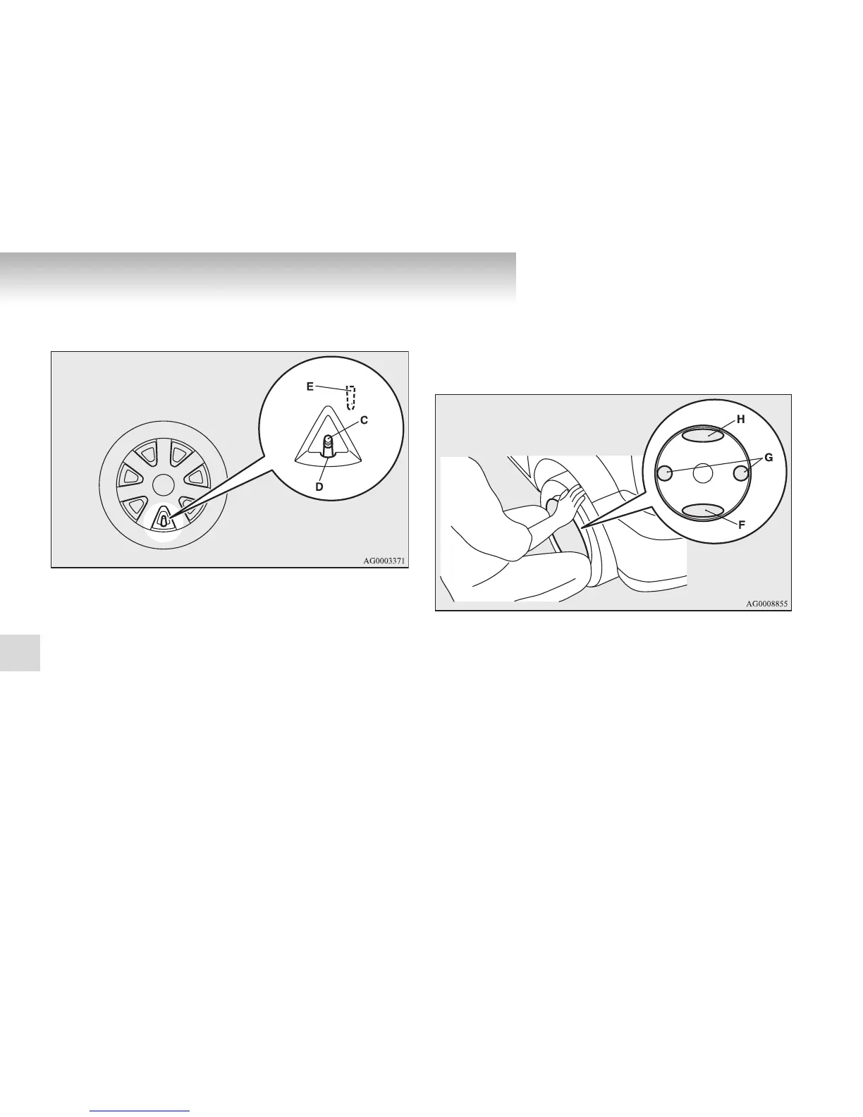 2. Align the tyre valve stem (C) with the cut out area (D) in
