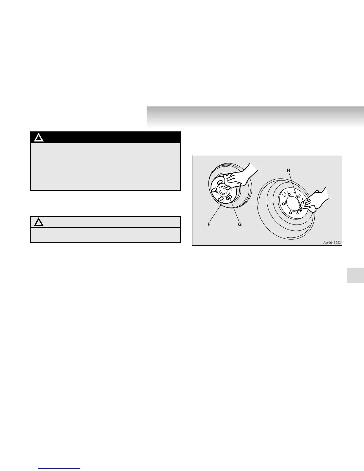 6. Clean out any mud, etc. on the hub surface (F), hub bolts