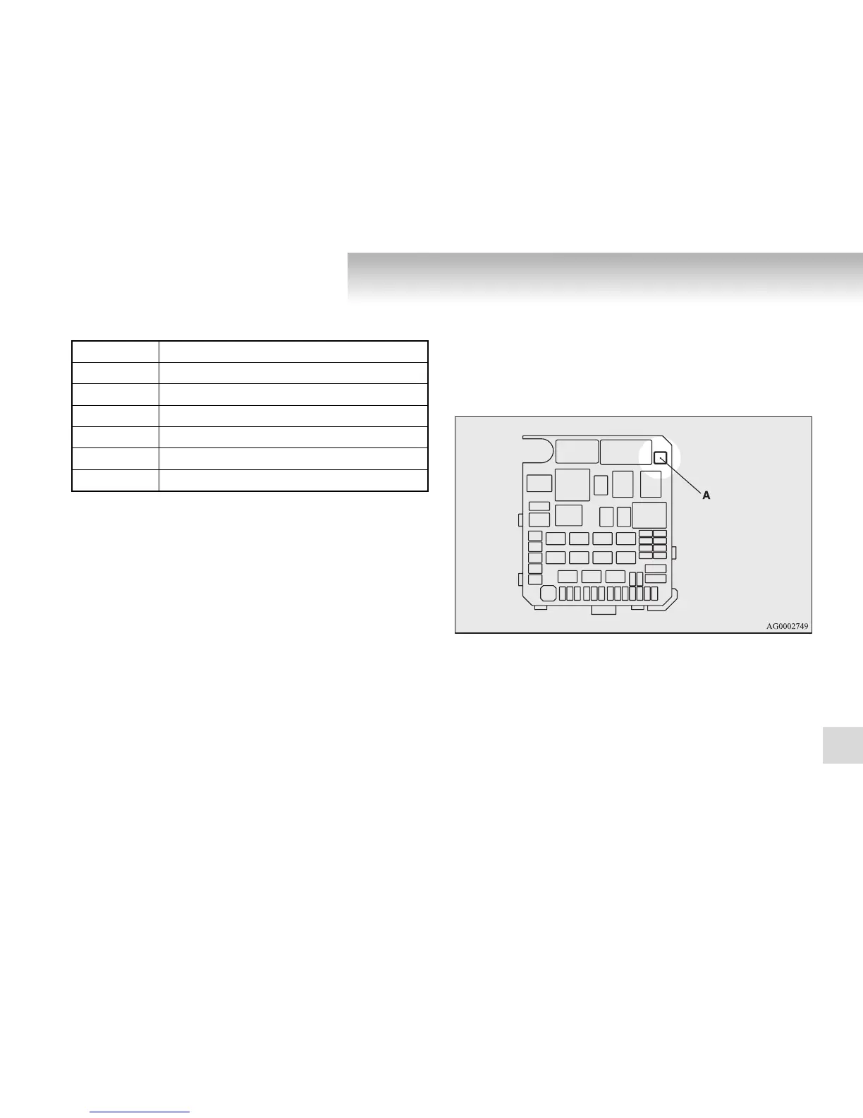 2. Remove the fuse puller (A) from the inside of the fuse box
