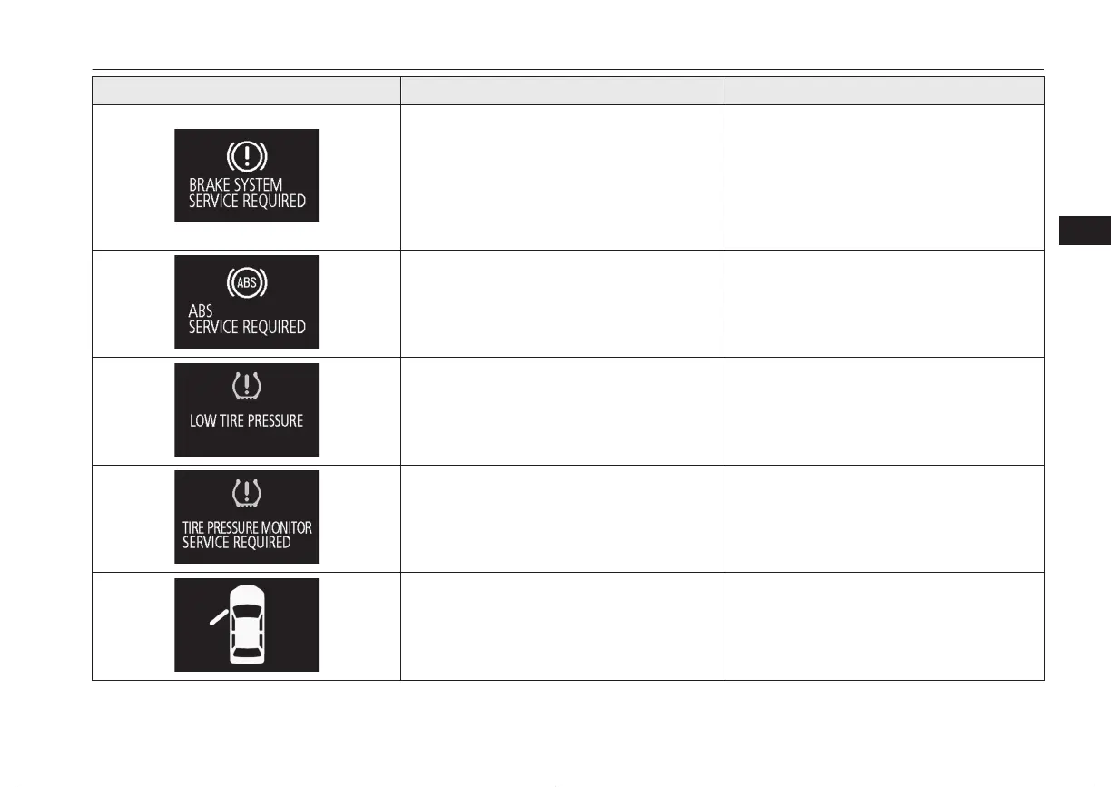 Indication lamp, warning lamp, and information screen display list (multi information display - Type 1)
