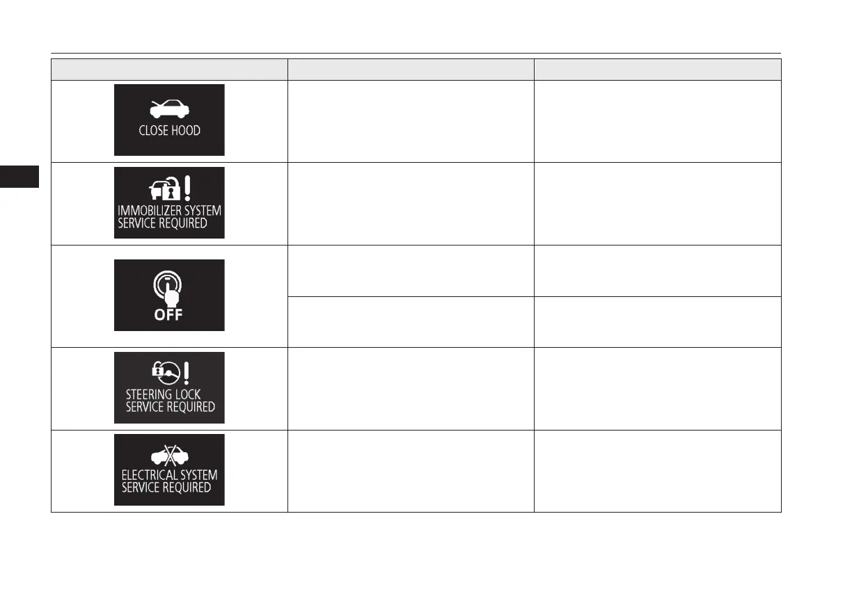 Indication lamp, warning lamp, and information screen display list (multi information display - Type 1)