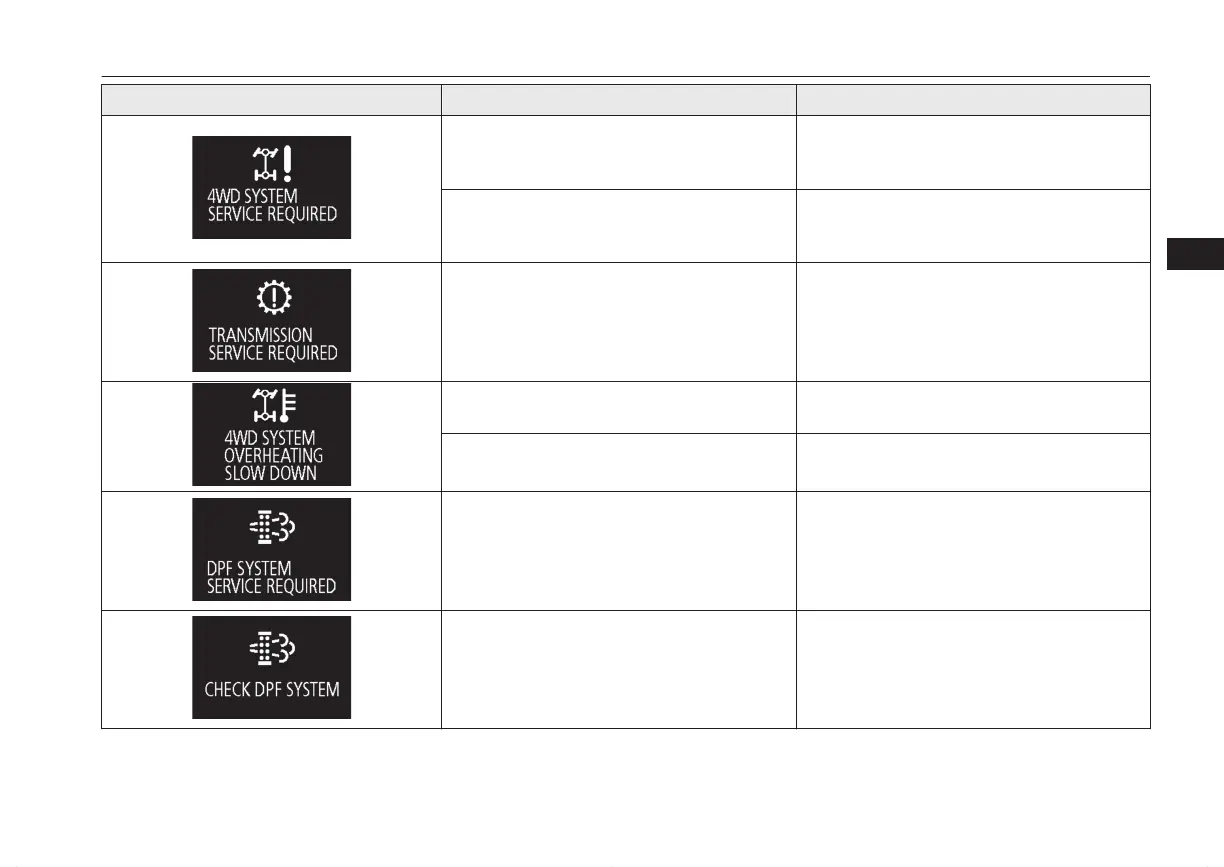 Indication lamp, warning lamp, and information screen display list (multi information display - Type 1)