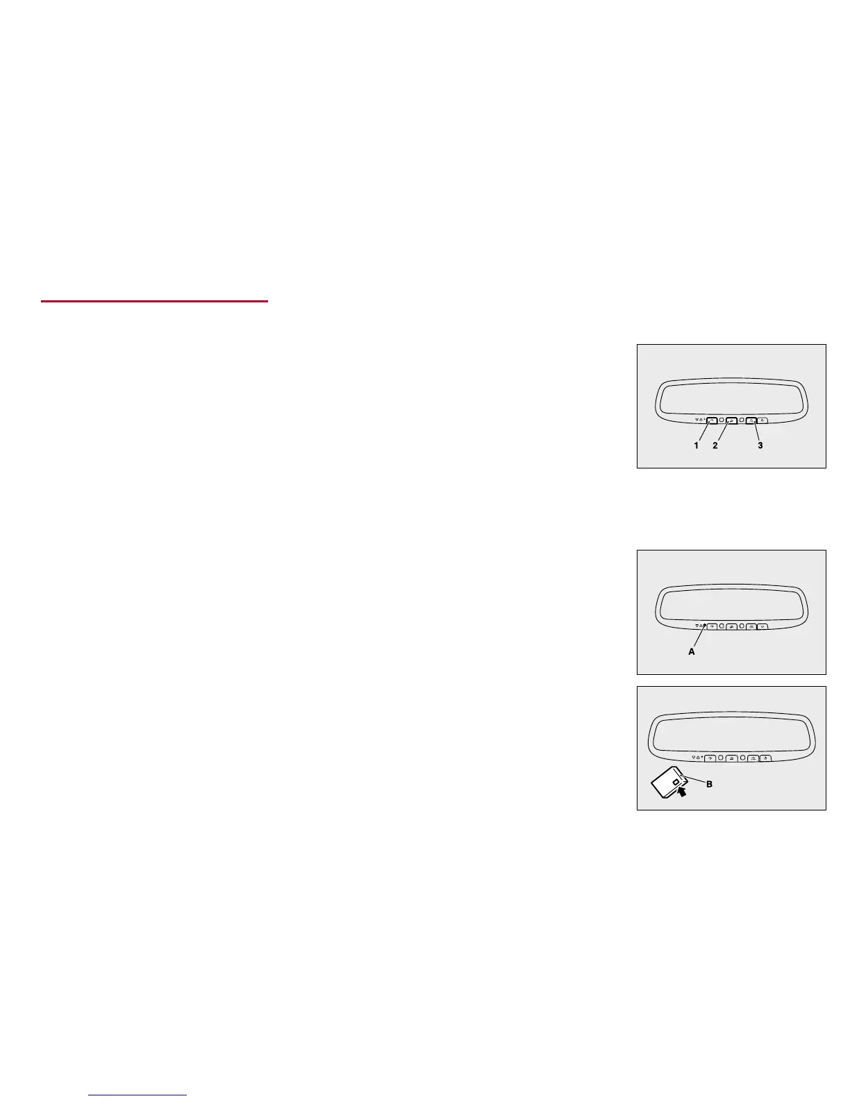 2. Position the end of your hand-held transmitter (B) 1 to 3 inches away from the HomeLink