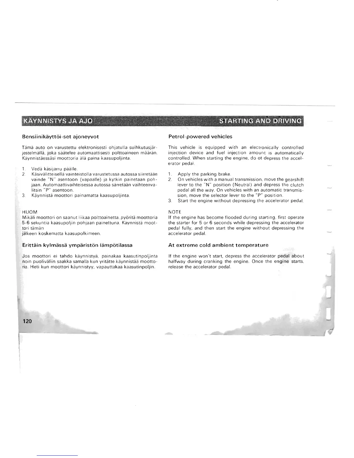 kaynnistya, painakaa kaasutinpoljinta
