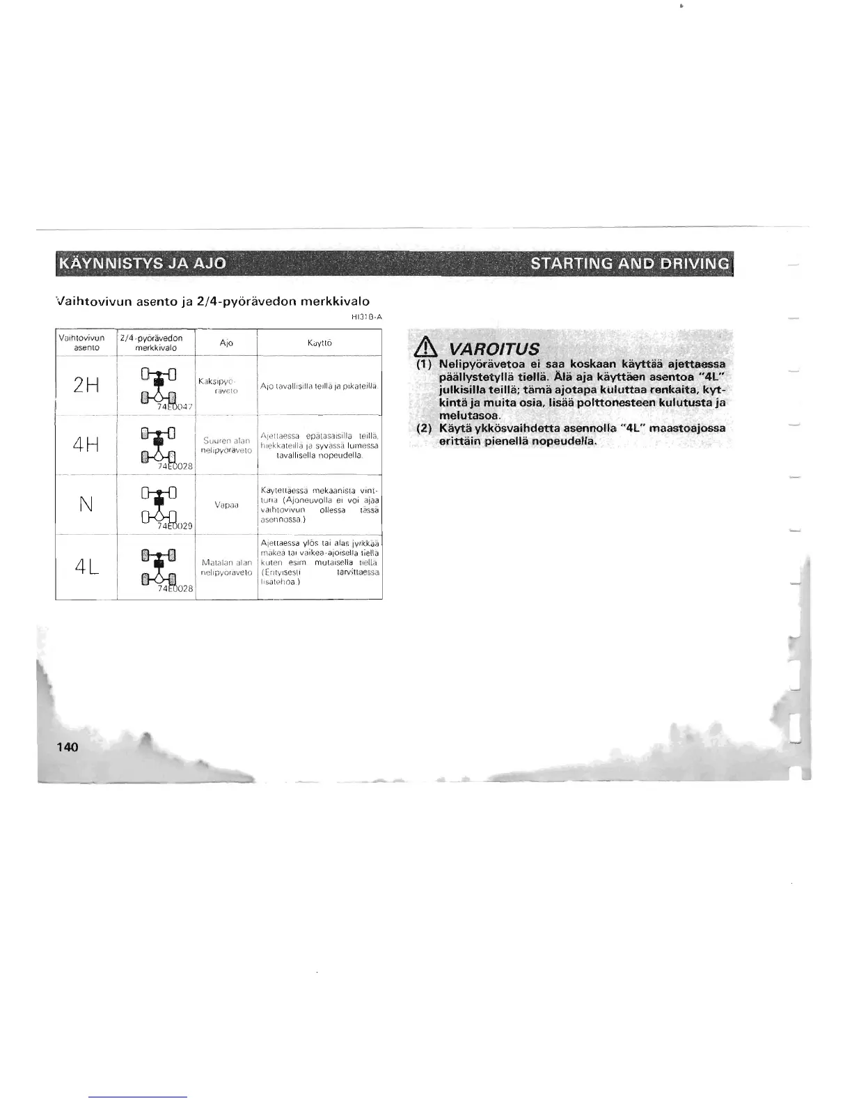 Kayta ykkosvaihdetta asennolla "4L" maastoajossa