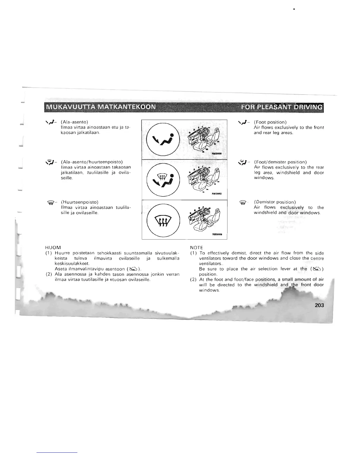 jalkatilaan, tuulilasille ja