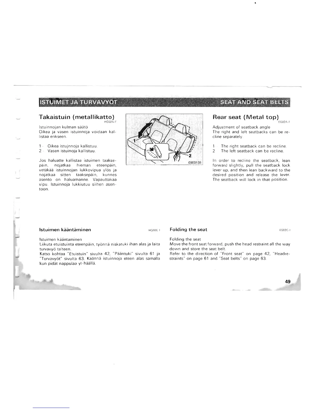 sivulta 63. Kaanna istuinnoja eteen alas samalla