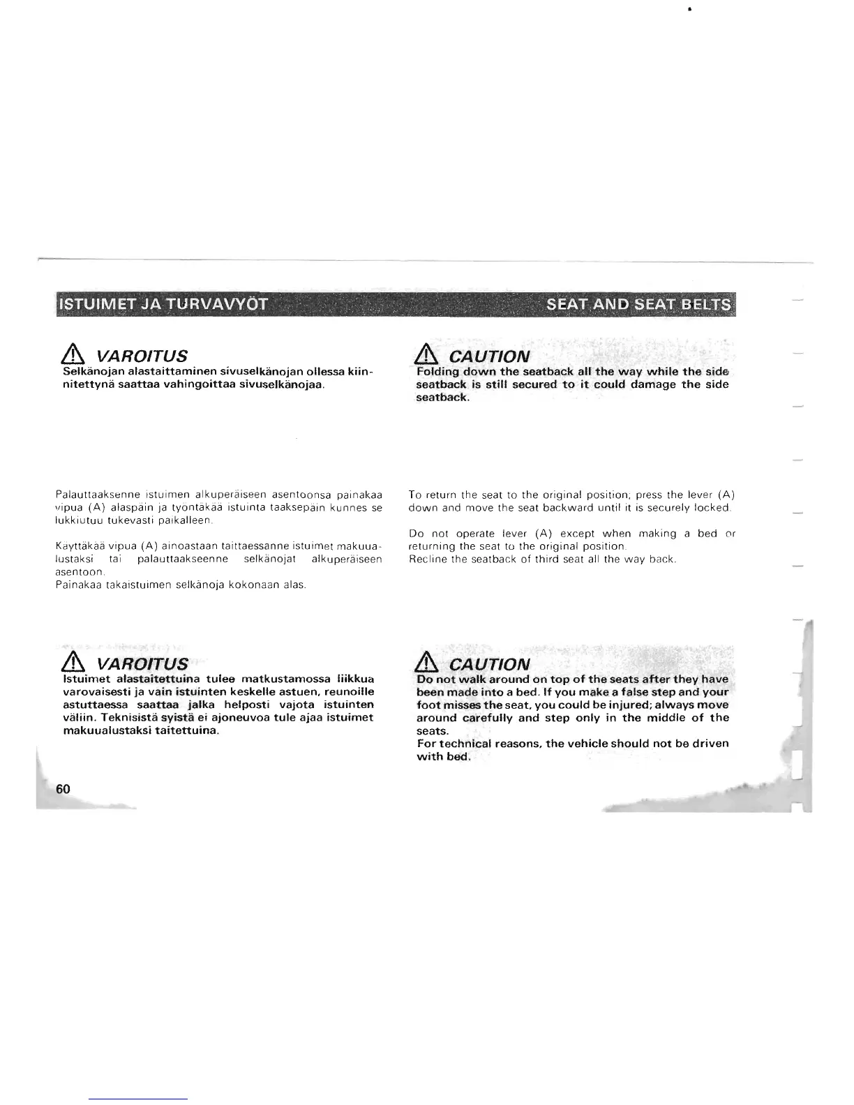 lustaksi tai palauttaakseenne selkanojat alkuperaiseen