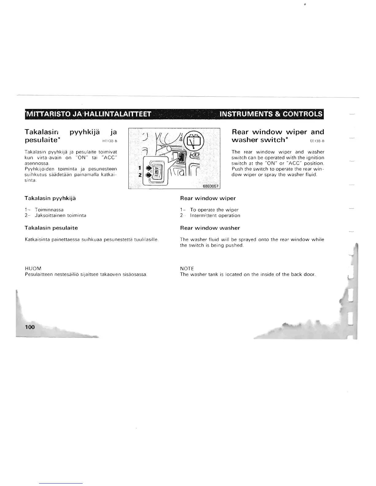 Katkaisinta painettaessa suihkuaa pesunestettii tuulilasille.