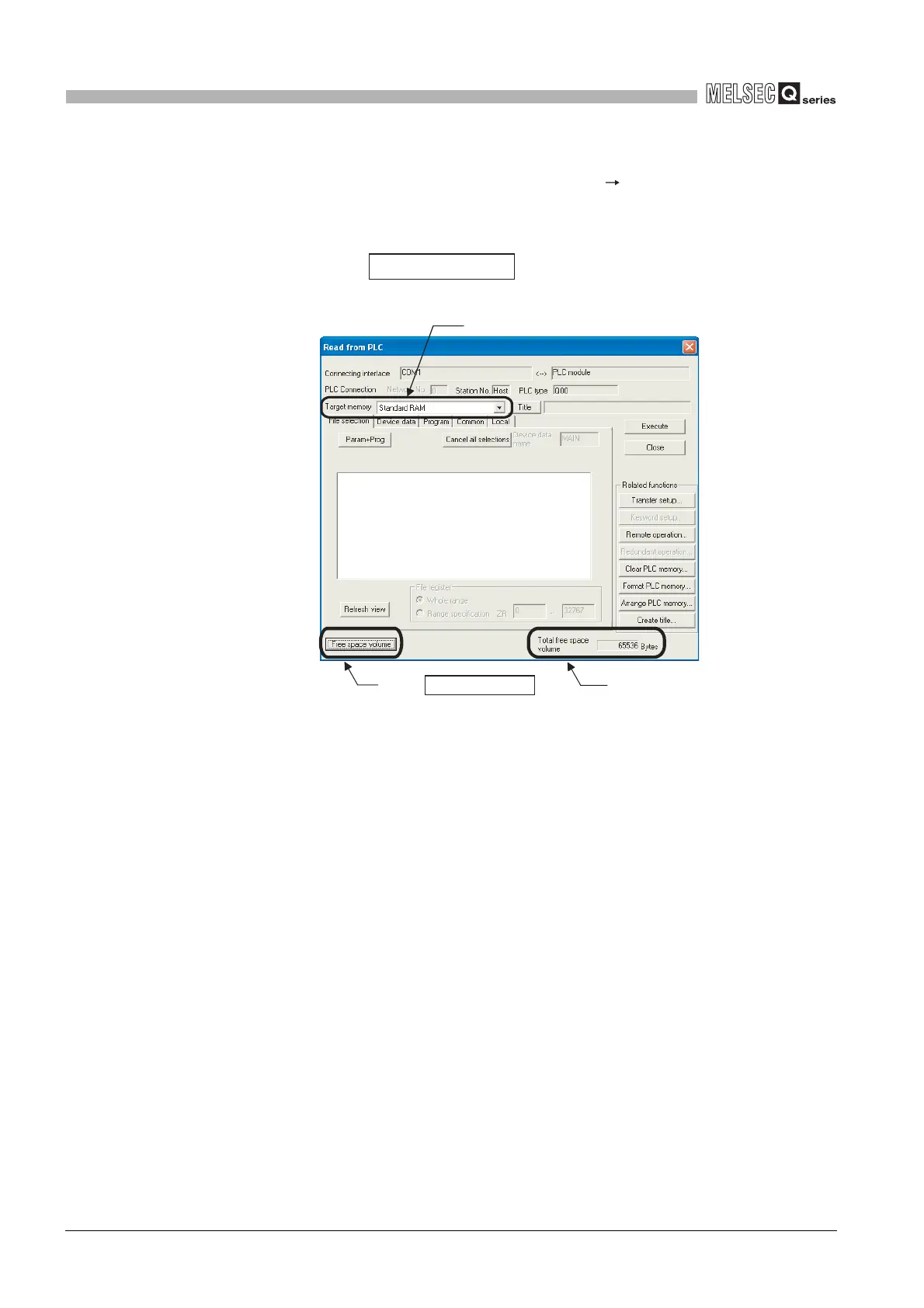 1) Select "Standard RAM" as the target memory on the Read from PLC screen.