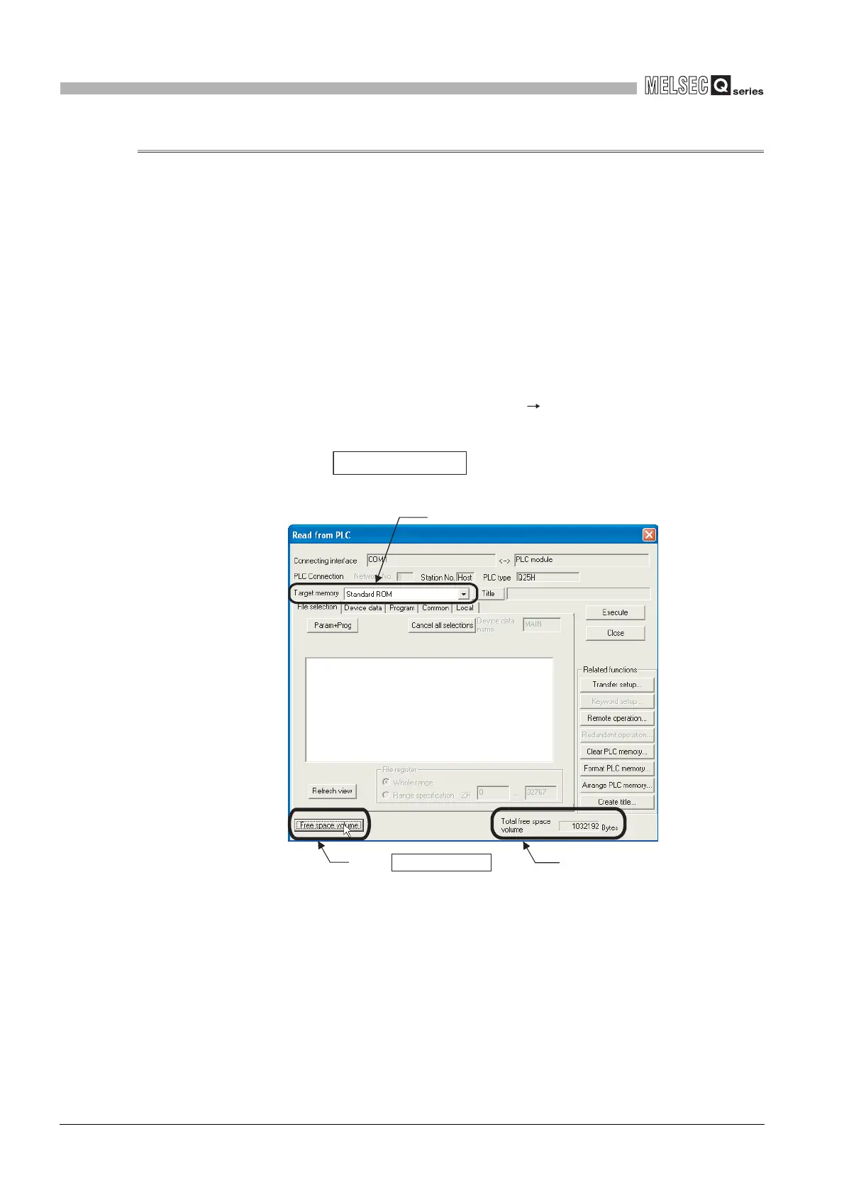 1) Select "Standard ROM" as the target memory on the Read from PLC screen.