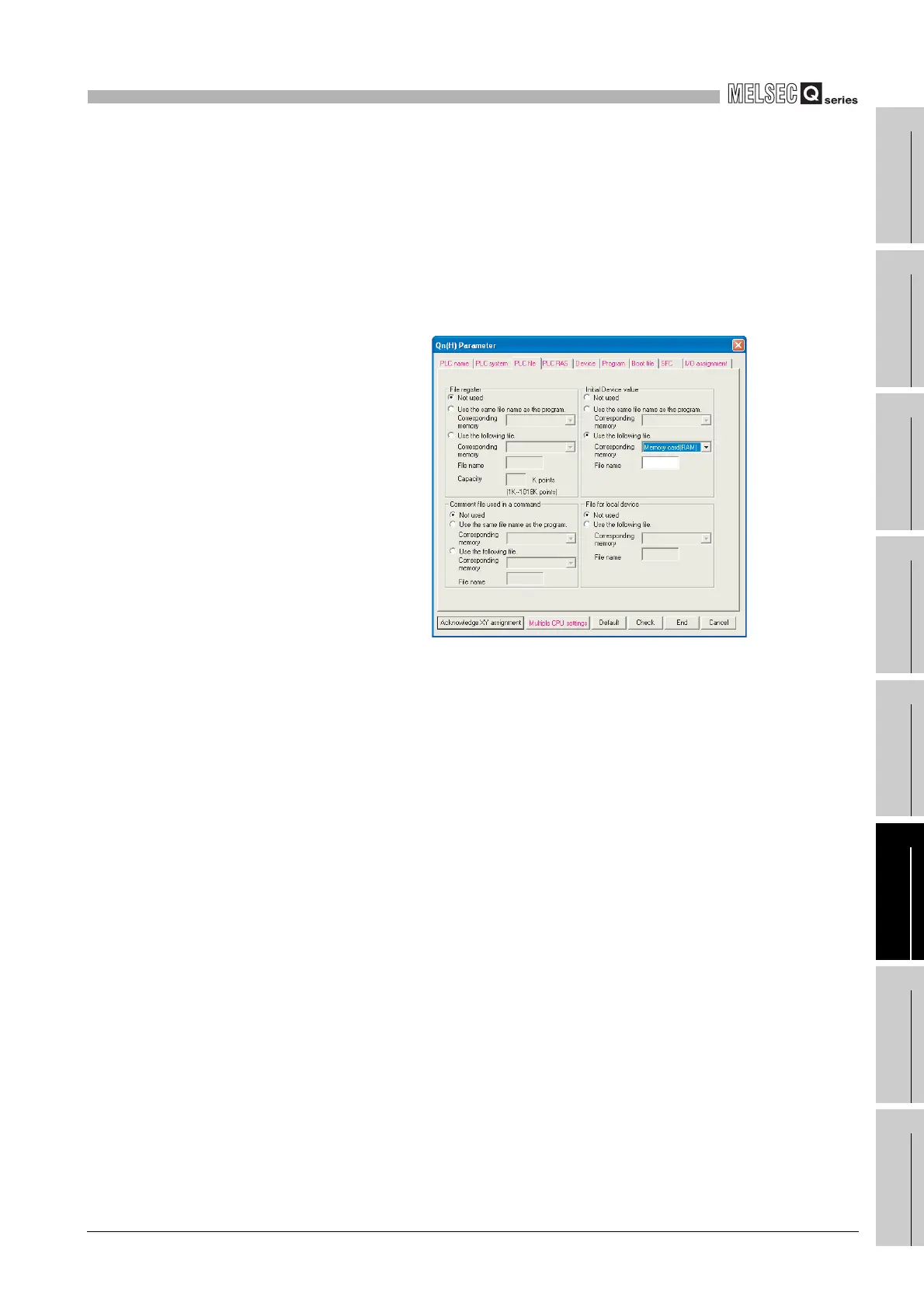 • At the "PLC file" tab screen in the "(PLC) Parameter" dialog box, designate the