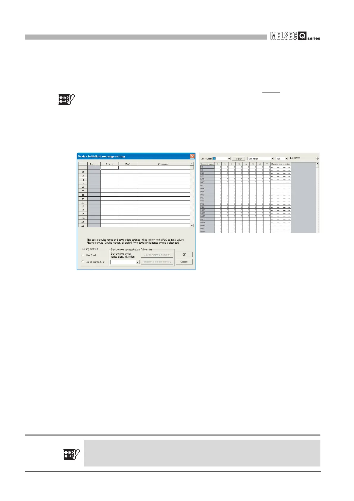 Diagram 6.92 Device initialization range setting screen, device memory screen