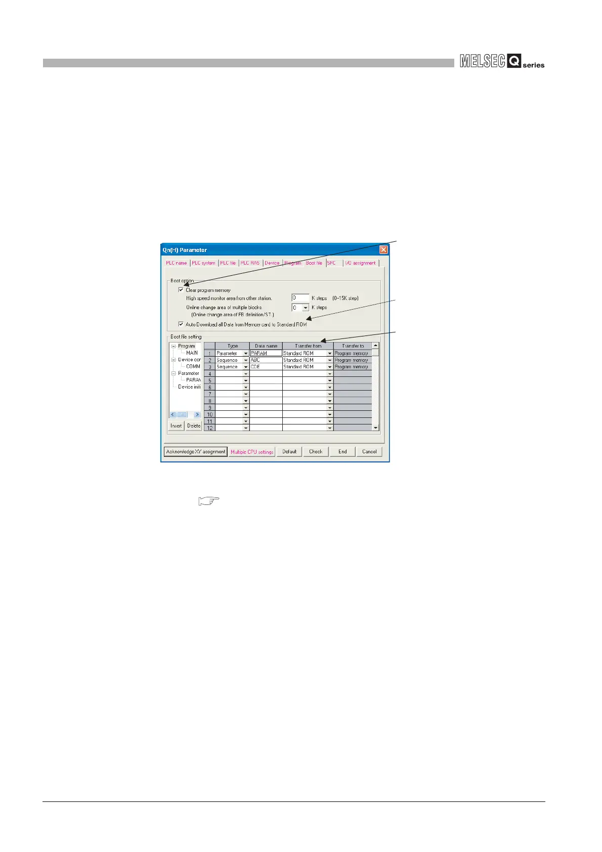 1) In the boot file setting of the PLC parameter dialog box, check "Clear the