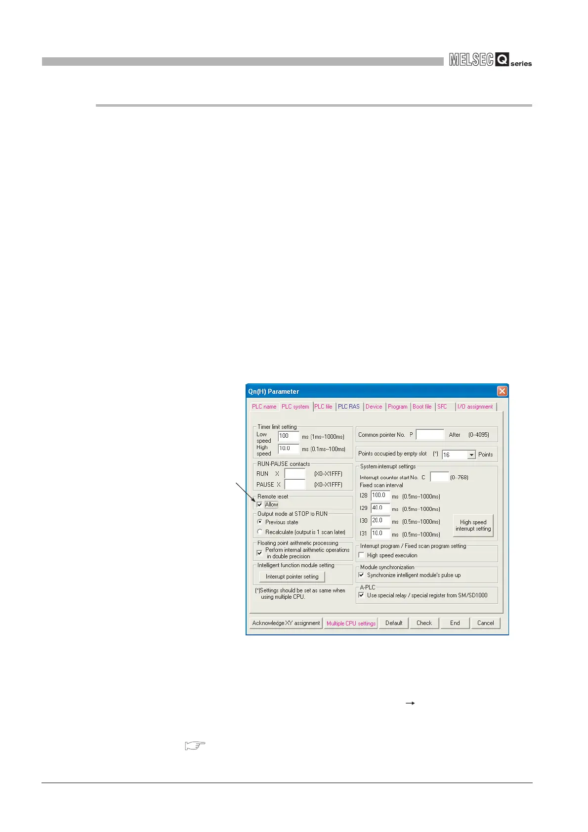 "Allow" check box at the "Remote reset" section, and then write parameters to the