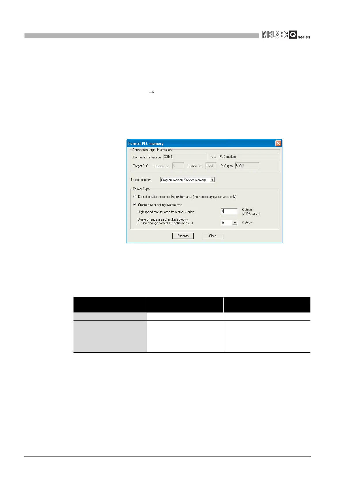 • Choose [Online] [Format PLC memory] on GX Developer to display the PLC