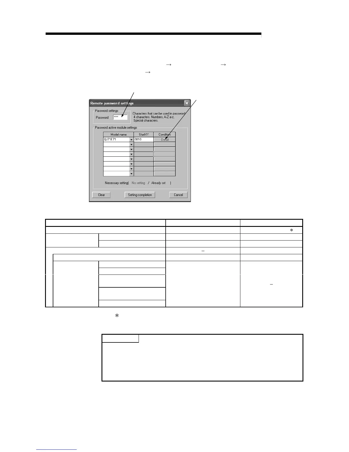 Password settings Enter a remote password 4 characters, ASCII code 1