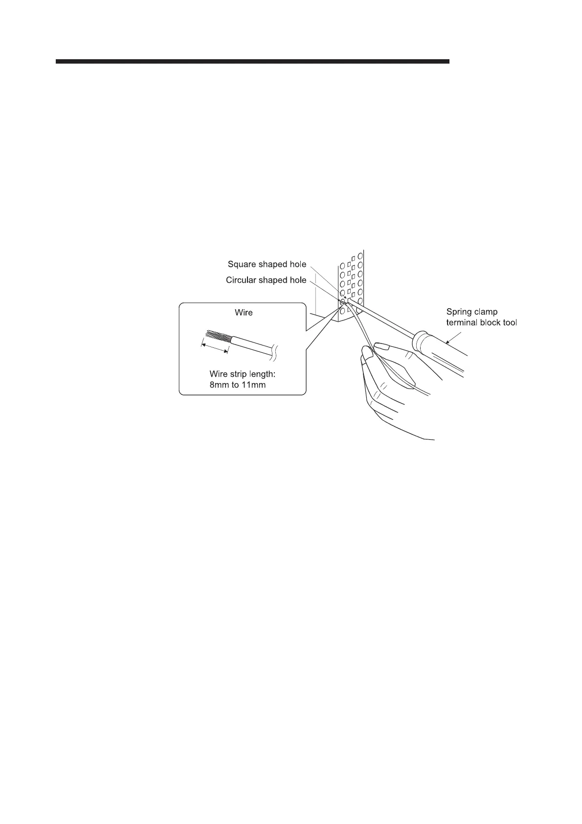 When using a wire (single wire or stranded wire), strip the wire to meet the