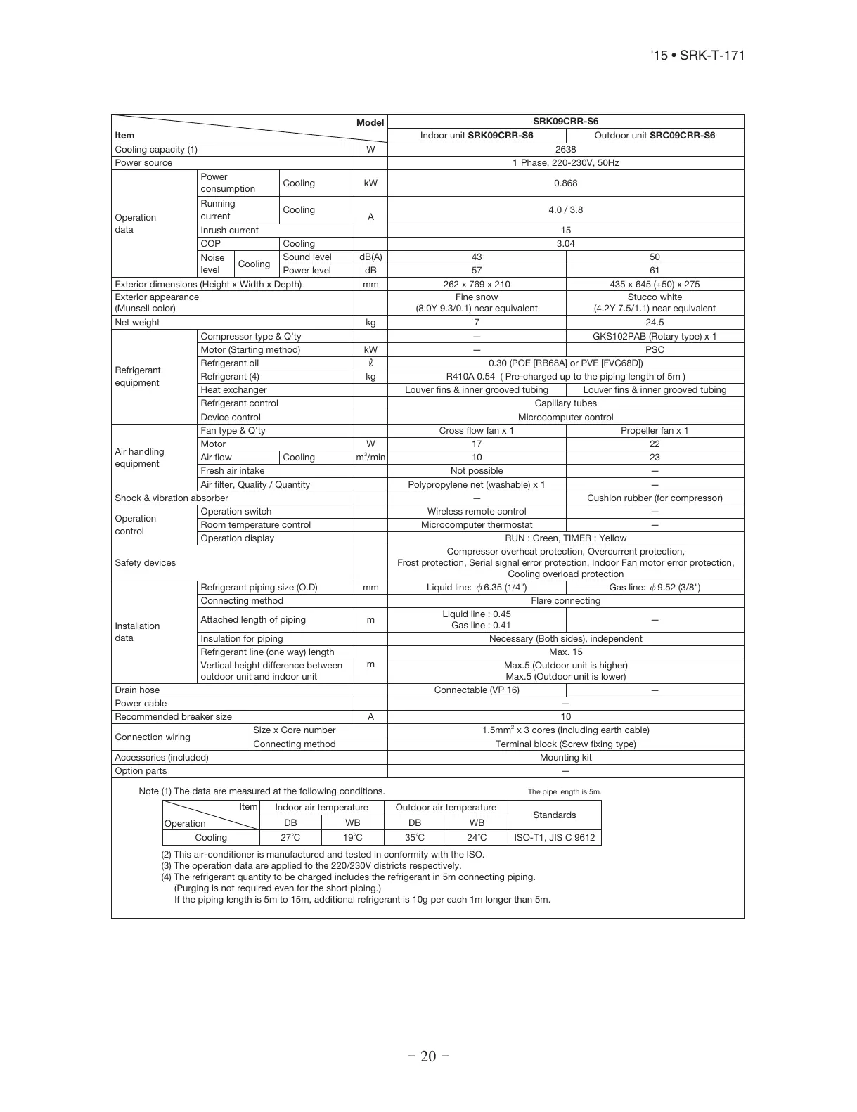 Indoor unit SRK09CRR-S6 Outdoor unit SRC09CRR-S6