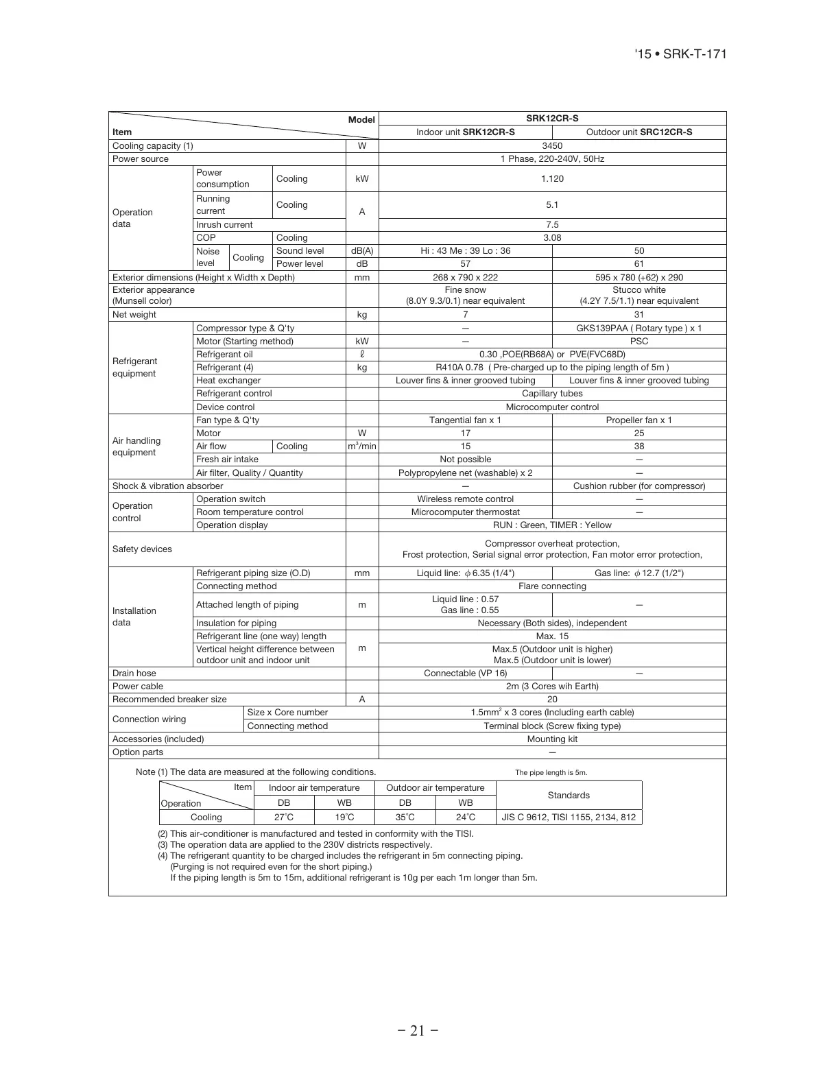 Indoor unit SRK12CR-S Outdoor unit SRC12CR-S