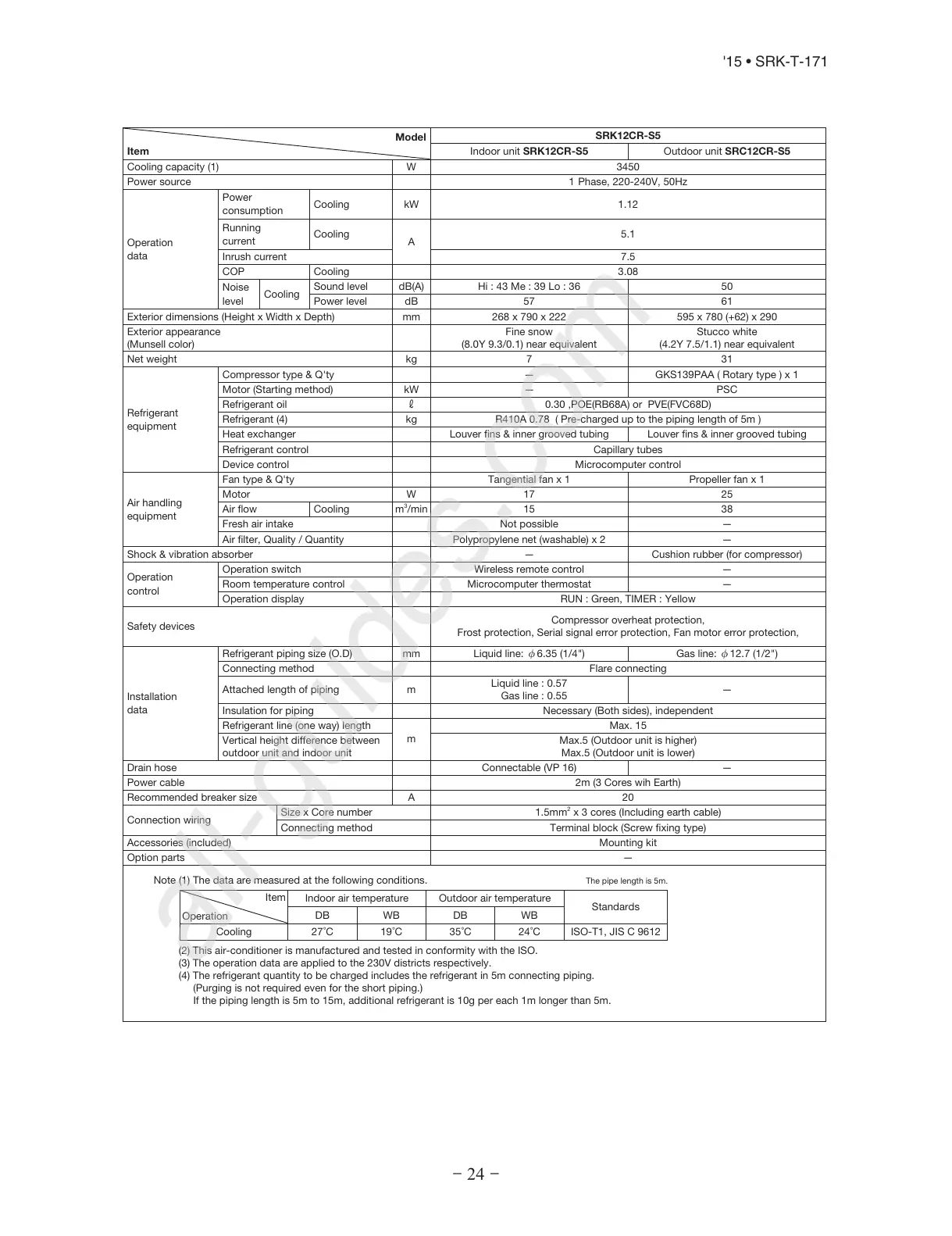Indoor unit SRK12CR-S5 Outdoor unit SRC12CR-S5