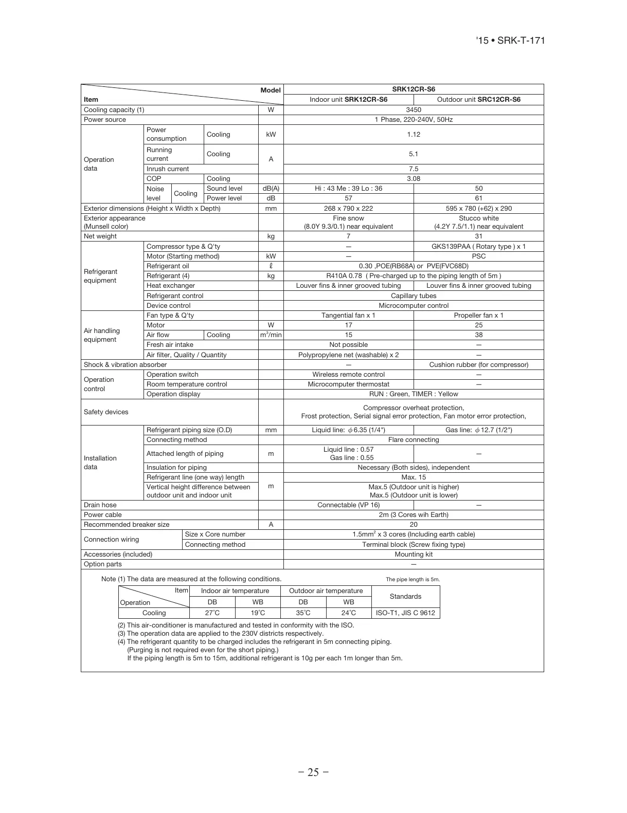 Indoor unit SRK12CR-S6 Outdoor unit SRC12CR-S6