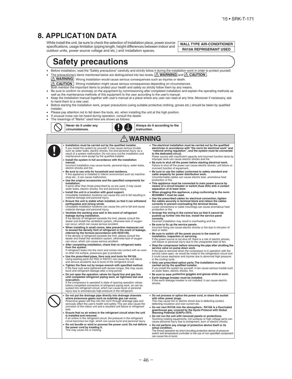 Before installation, read the “Safety precautions” carefully and strictly follow it during the installation work in order to protect yourself.w