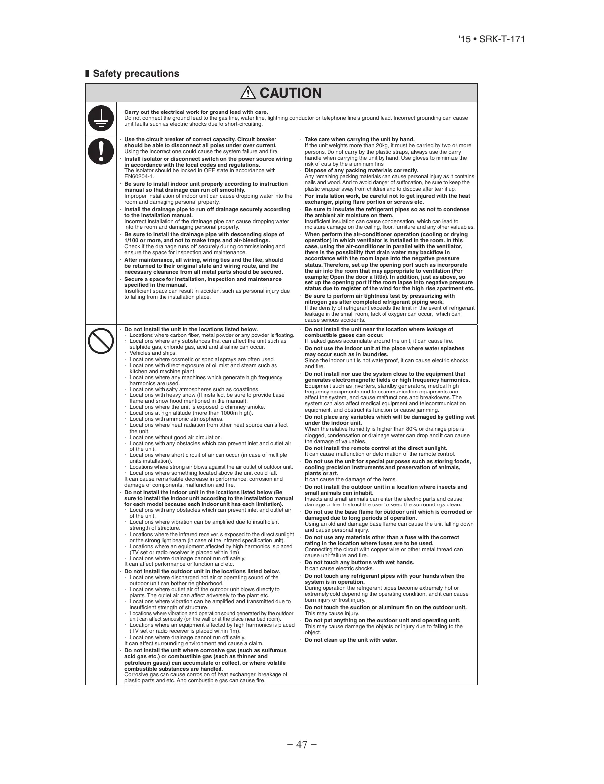 Since the indoor unit is not waterproof, it can cause electric shocks