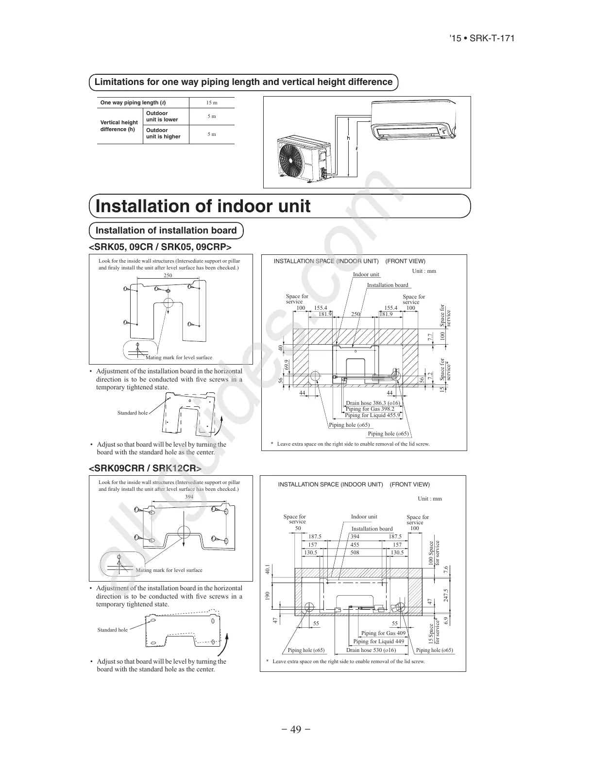 INSTALLATION SPACE (INDOOR UNIT) (FRONT VIEW)