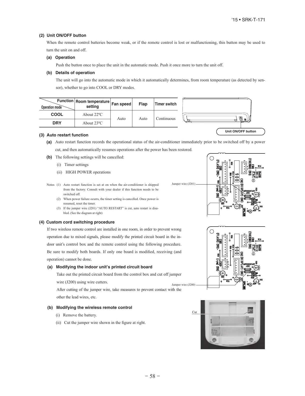 If the jumper wire (J201) “AUTO RESTART” is cut, auto restart is disa-