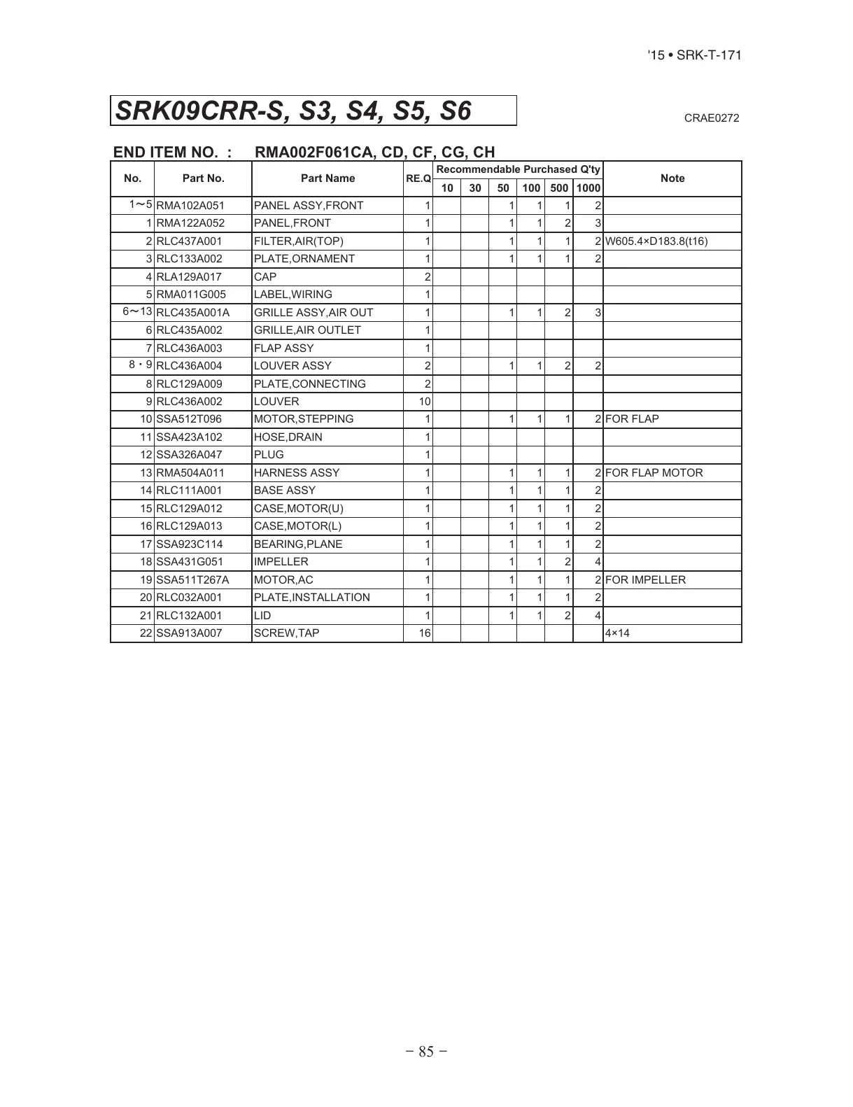 END ITEM NO. : RMA002F061CA, CD, CF, CG, CH