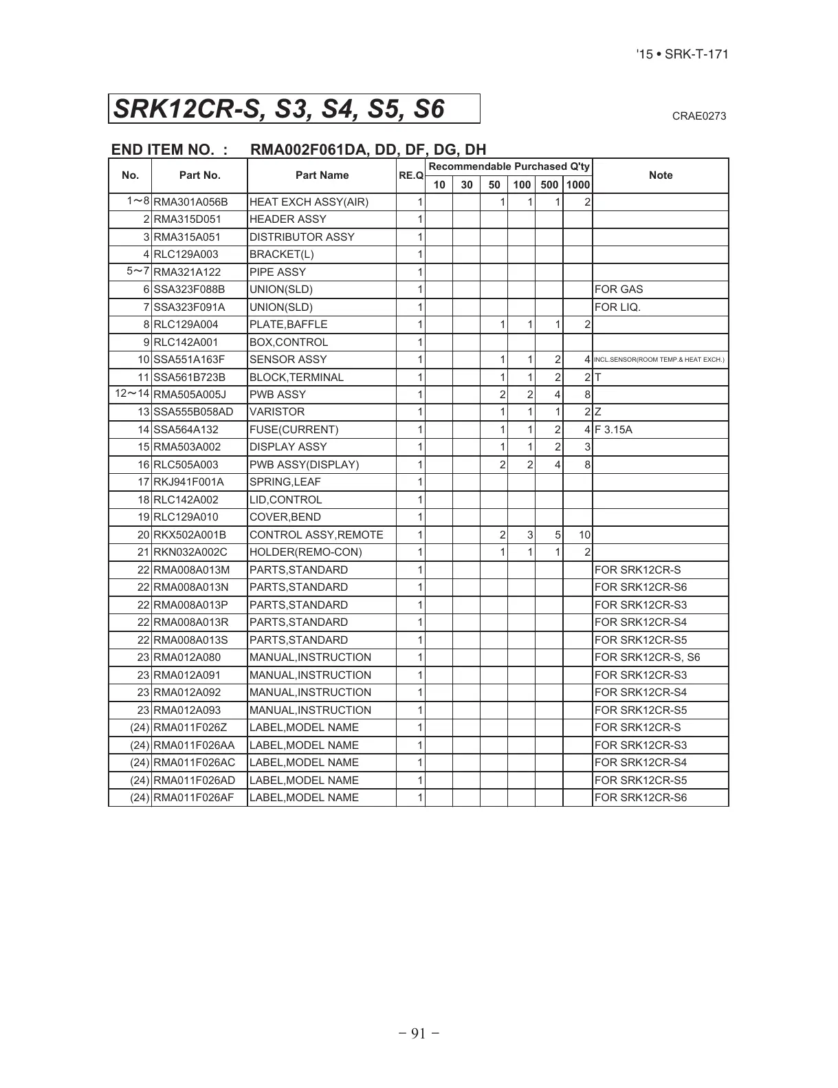 END ITEM NO. : RMA002F061DA, DD, DF, DG, DH
