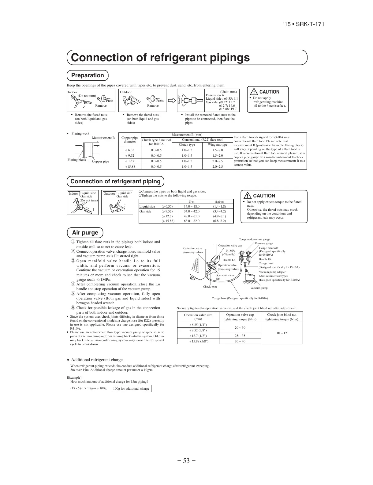 When refrigerant piping exceeds 5m conduct additional refrigerant charge after refrigerant sweeping.
