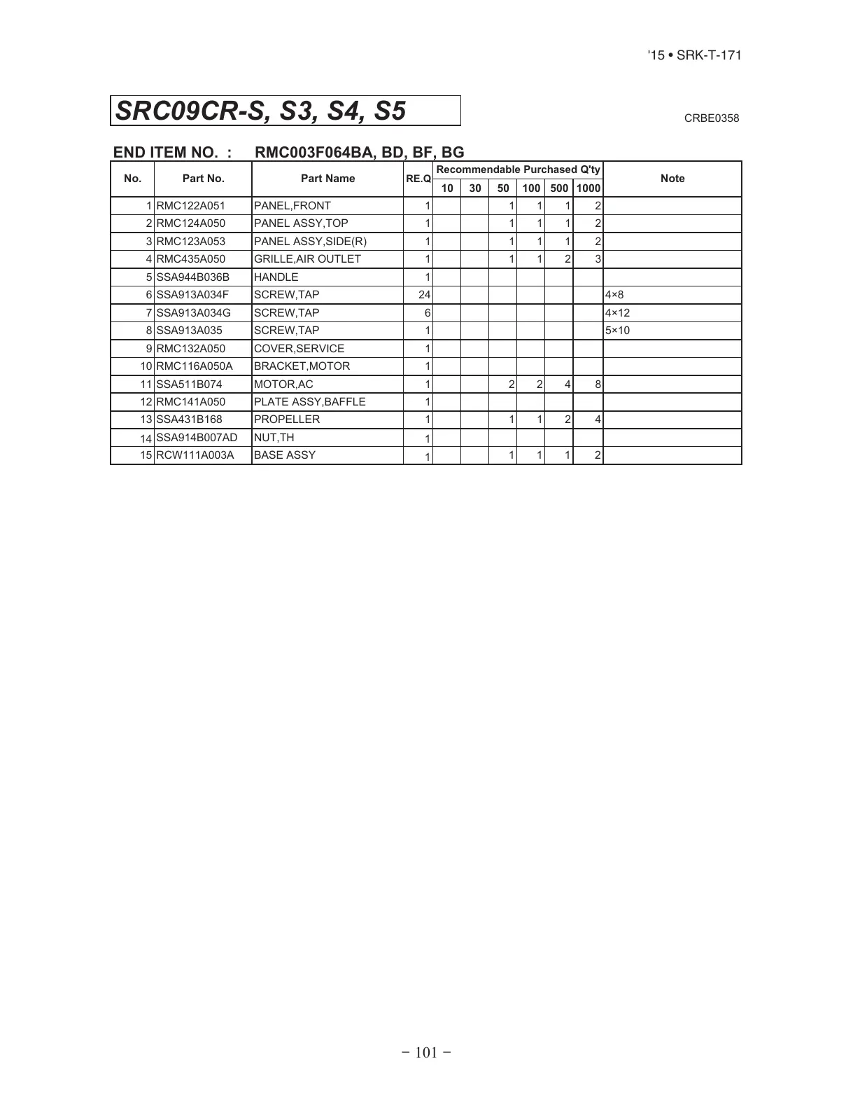 1 RMC122A051 PANEL,FRONT  1 1 1 1 2