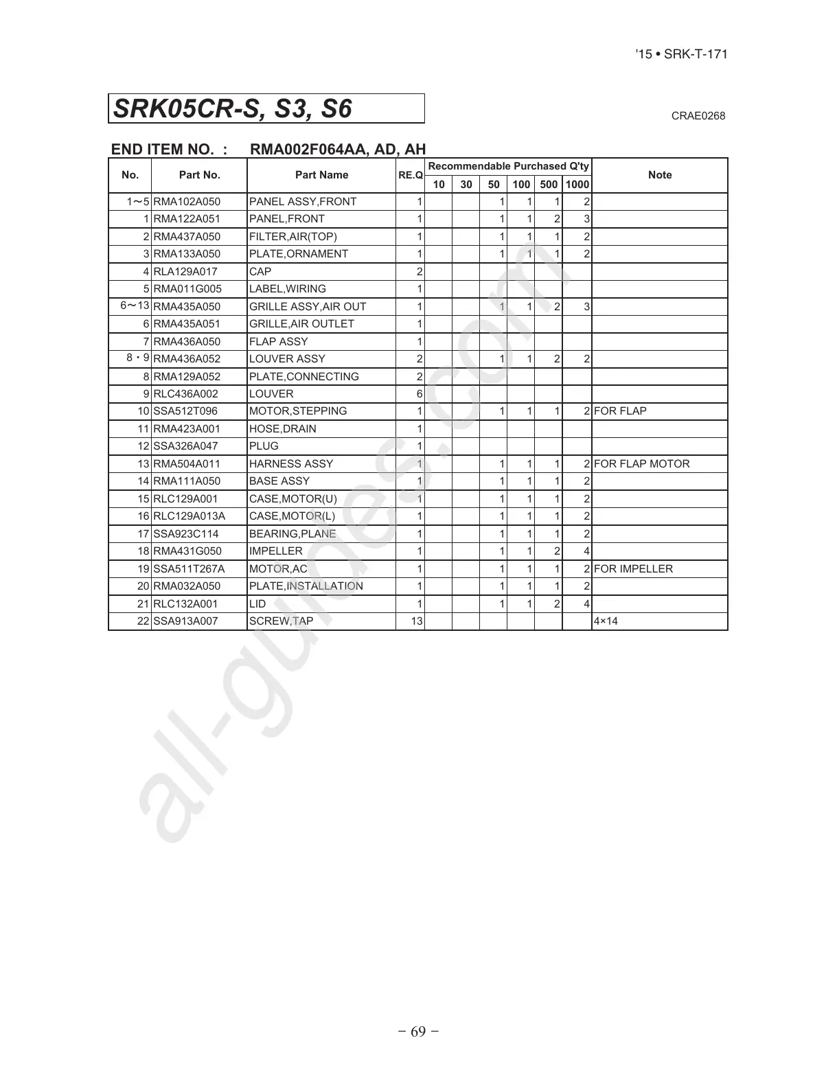 END ITEM NO.  : RMA002F064AA, AD, AH