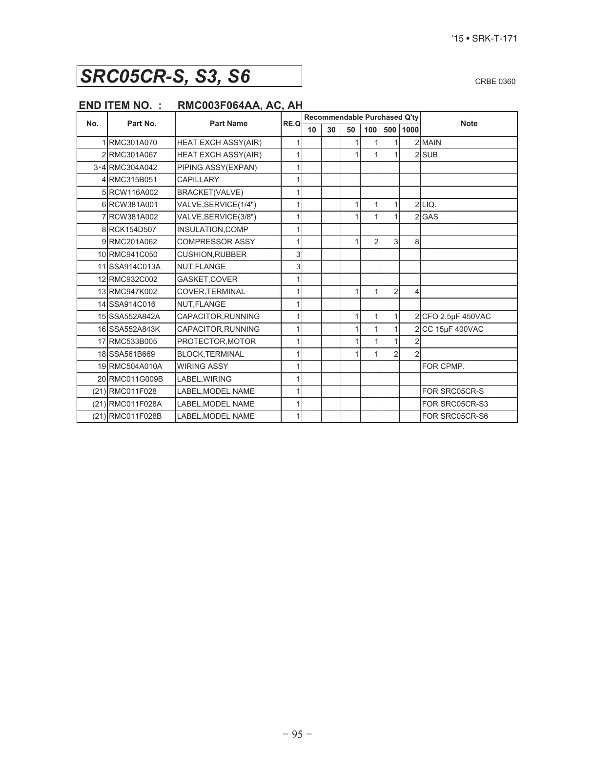 END ITEM NO.  : RMC003F064AA, AC, AH
