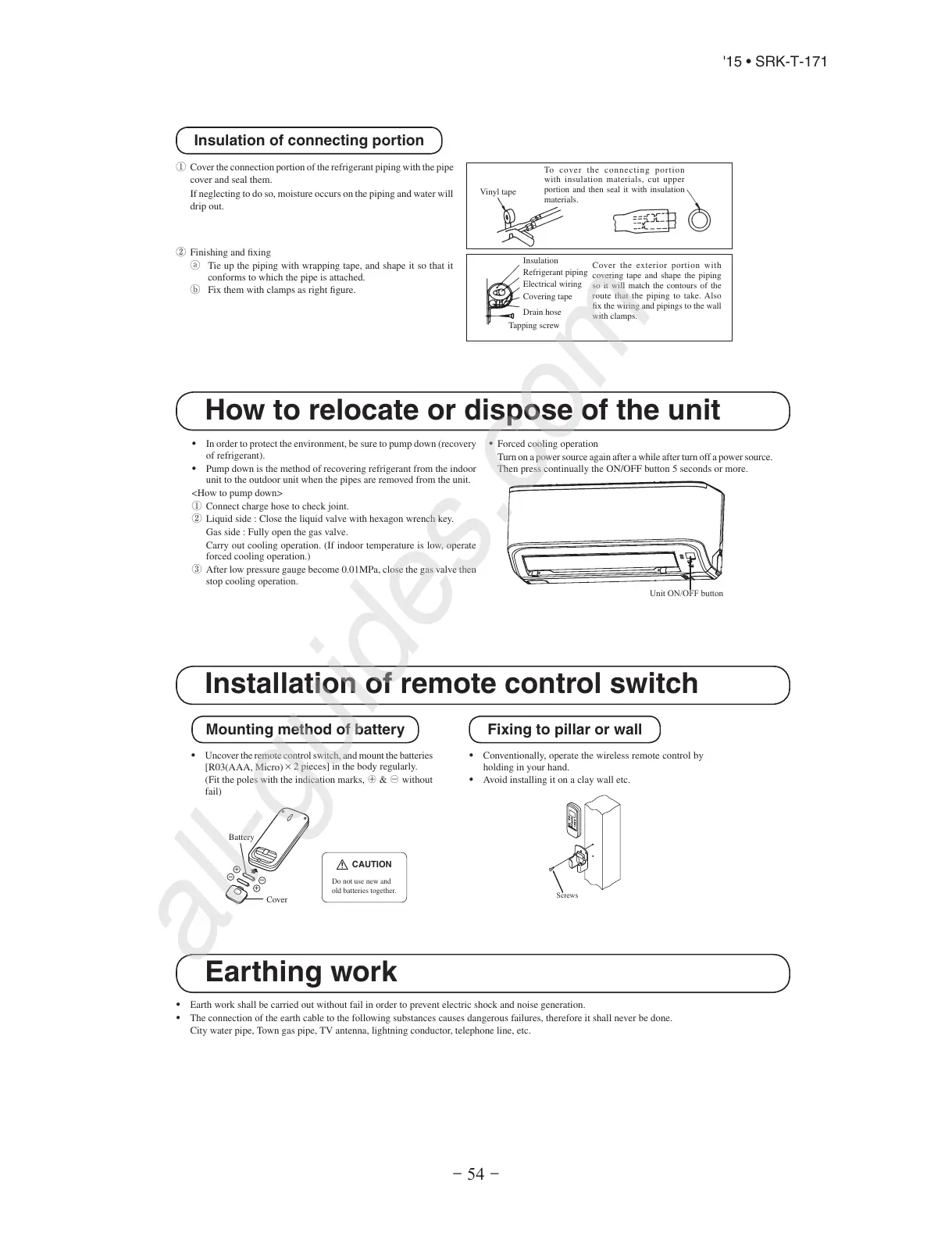 • Earth work shall be carried out without fail in order to prevent electric shock and noise generation.