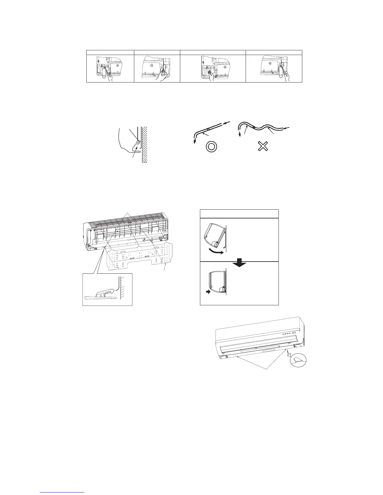 1. Remove the drain hose. 2. Remove the drain cap. 3. Insert the drain cap. 4. Connect the drain hose.