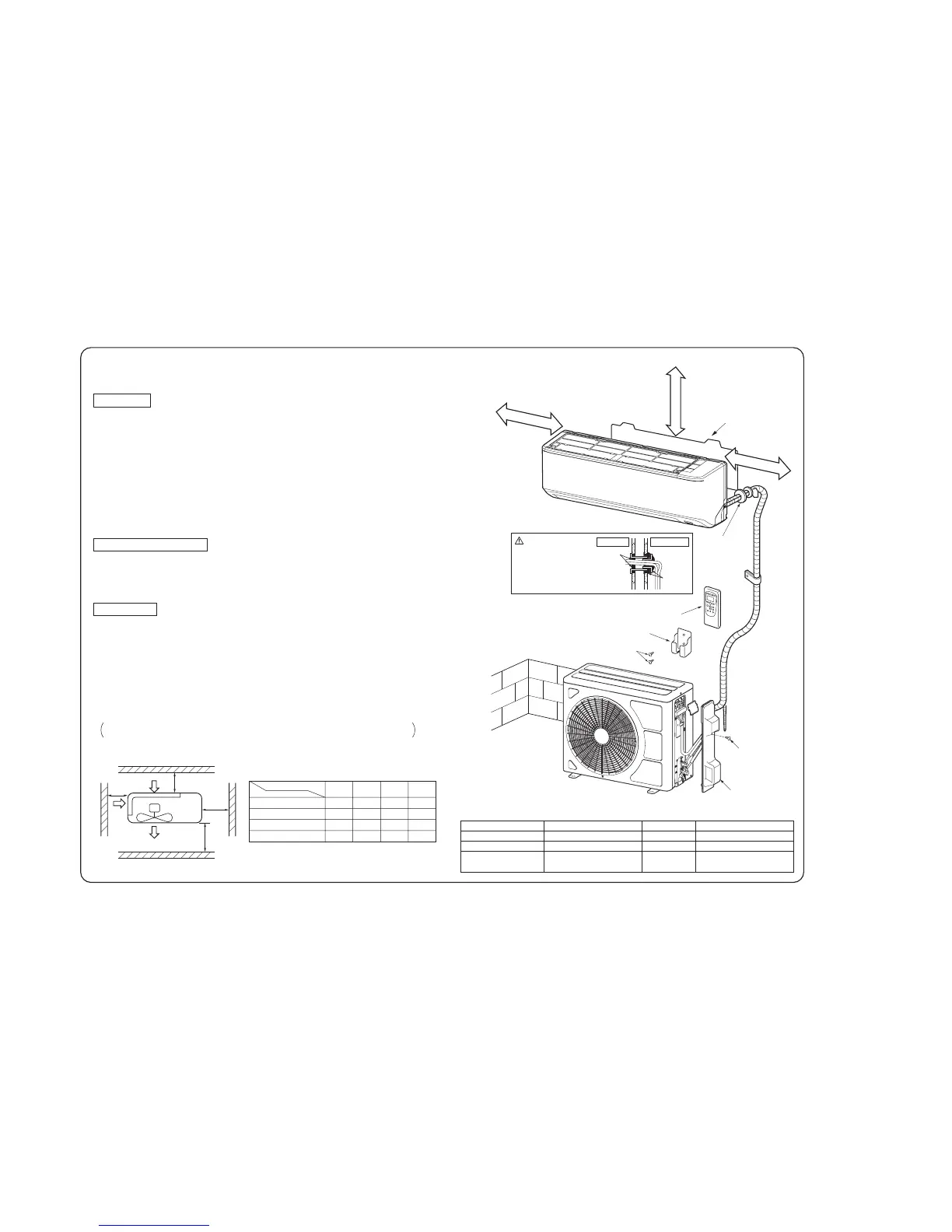 When the unit is installed, the space of the following dimension and above shall be secured.