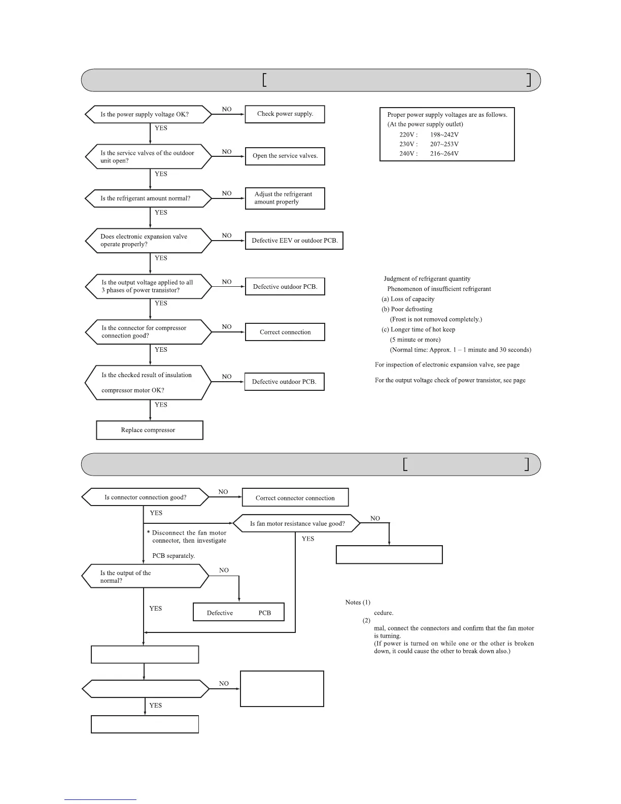 Insufficient refregerant amount, Faulty power transistor, Broken compressor wire